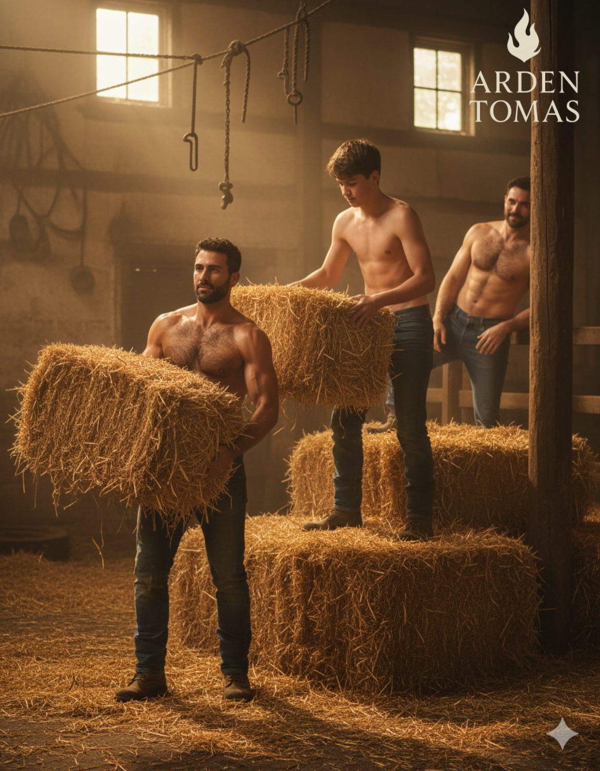 He rose above me, eyes locked on mine as he entered me, slowly, inch by inch, letting me feel every bit of him. Our movements were careful at first, almost ceremonial, then wilder, deeper. The farm sounds surrounded us: wind in the trees, crickets, our own panting.